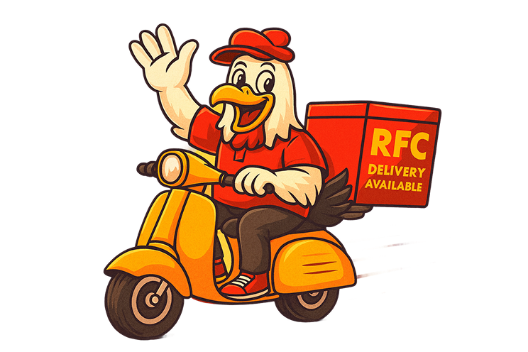 Order now and let RFC take care of your hunger! We are here to bring you fast, fresh, and hot meals right to your doorstep. With our quick delivery service, your cravings will be satisfied in no time.”